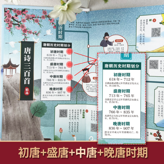 【买4送1】唐诗三百首思维导图漫画版古诗词思维导图